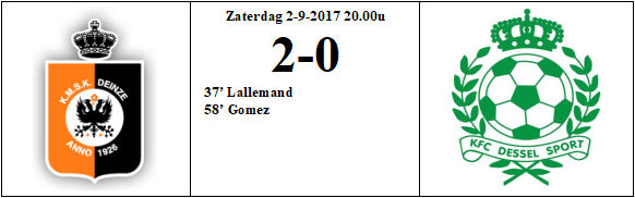 58′ Dessel begint iets minder scherp aan de tweede helft en dat resulteert in de 2-0 van Deinze. Een lange haal naar voren (dat is waar het spel van Deinze vooral uit bestaat vanavond) wordt door Lallemand opgepikt, voorgegeven en afgemaakt door Romero Gomez.