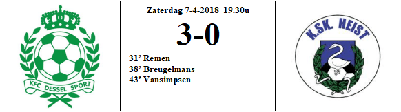 58′ Strafschop voor Dessel na hands van een van de Heistse verdedigers.