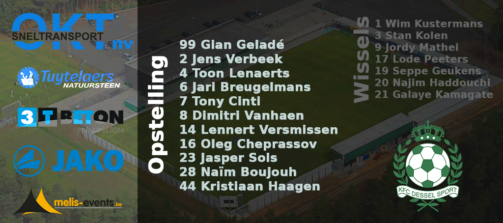 61′ De bezoekers spelen ook steeds potiger en harder. Aanvallend komen ze er in de tweede helft totaal niet meer aan te pas, dus ze proberen op elk mogelijke manier het spel te vertragen. Het is nu zaak voor Dessel om hier niet in mee te gaan, maar te blijven voetballen.