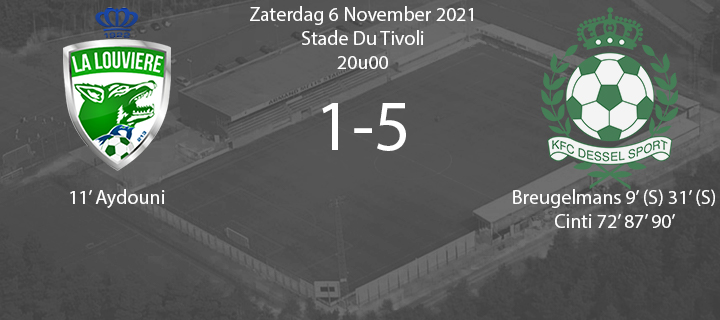 Rust in La Louviere. In een kansarme eerste helft pakt Dessel de voorspring aan de rust door twee strafschop doelpunten. Daarbij mag doelman Kustermans wederom een compliment krijgen. Voor de tweede keer dit seizoen pakt hij een strafschop op een belangrijk moment. Zijn prachtige save na enkele minuten zorgde ervoor dat Dessel niet al heel snel op achterstand kwam en zo al snel achter de feiten moest aan lopen. De thuisploeg kwam nog het dichtst in de buurt van het vijandige doel, maar ook zij konden nooit echt veel gevaar stichten. Het zegt dan ook genoeg dat alle drie de doelpunten uit een stilstaande fase kwamen.
