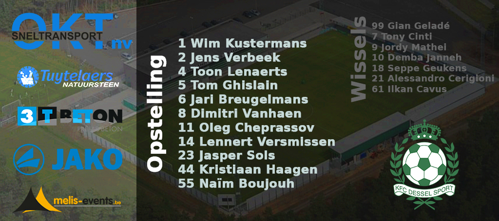 85′ Beide ploegen wisselen. Bij Dessel komt Demba in de ploeg voor Cheprassov. De bezoekers brengen Van Den Ackerveken en Besson voor Kose en een speler waarvan we jullie de naam schuldig moeten blijven.