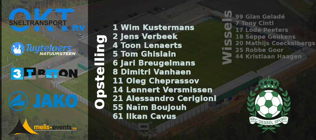 34′ DOELPUNT DESSEL! Een hoekschop van Boujouh wordt bij de eerste paal in een duel nog van richting veranderd, waardoor Belin de bal niet kan klemmen. Vanhaen staat vervolgens op de goede plek en trapt de rebound tegen de touwen!