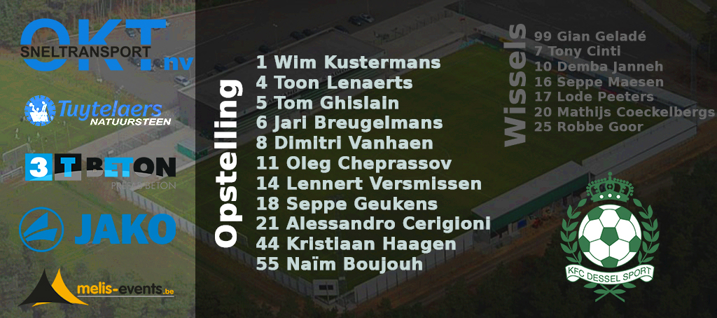 71′ Bij Dessel worden Cheprassov en Cerigioni vervangen door Maesen en Peeters.