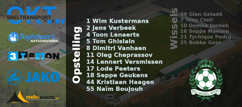 54′ De bezoekers komen op gelijke hoogte door een gelukje. Lenaerts wil een mislukt schot van Lambo wegwerken, maar via zijn lichaam verdwijnt de bal in het Desselse doel.