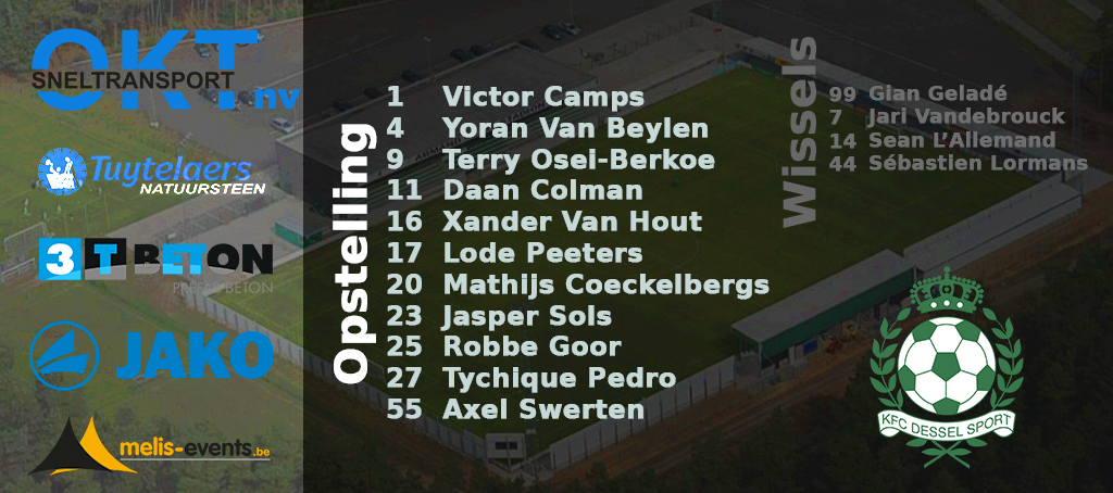 70′ Wederom een slordigheid aan Desselse zijde. Nhaili ziet zijn schot nog gekeerd worden door Camps, Berete hoeft de rebound maar in een leeg doel te duwen maar mist de bal op onverklaarbare wijze. Meteen het sein voor een korte drinkpauze.