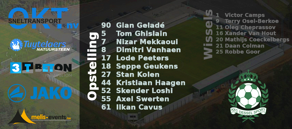 44′ DOELPUNT DESSEL! Mekkaoui komt zijn directe tegenstander weer voorbij en legt goed voor, centraal staat Ghislain op de goede plek en kopt de aanvaller binnen.