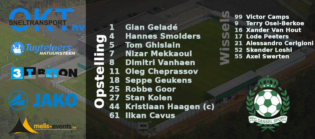 46′ We zijn aan de tweede helft begonnen. Bij Dessel is Cavus vervangen door Osei-Berkoe.