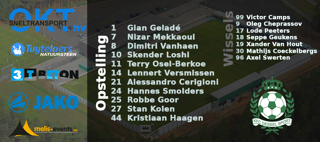46′ We zijn aan de tweede helft begonnen, bij Dessel komen Swerten en Geukens in de ploeg voor Kolen en Versmissen.