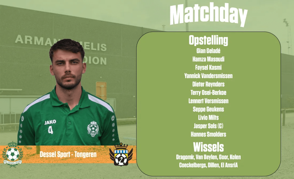 111′ Beide ploegen wisselen nog. Bij Dessel wordt Milts vervangen door Goor, bij de bezoekers komt Bourard in de ploeg voor Jungschleger.