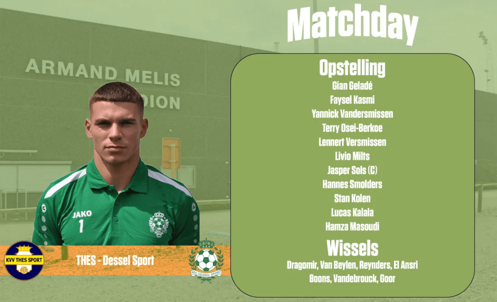 48´ GOALLL! Dessel begint scherp aan de tweede helft. Vandersmissen zet vanaf links voor en Osei-Berkoe laat lopen voor Milts. De aanvaller neemt aan en trapt beheert in de bovenhoek binnen!