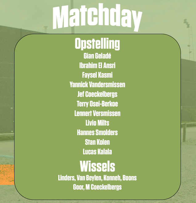 69′ Kasmi en Jef Coeckelbergs worden vervangen door Konneh en Mathijs Coeckelbergs.