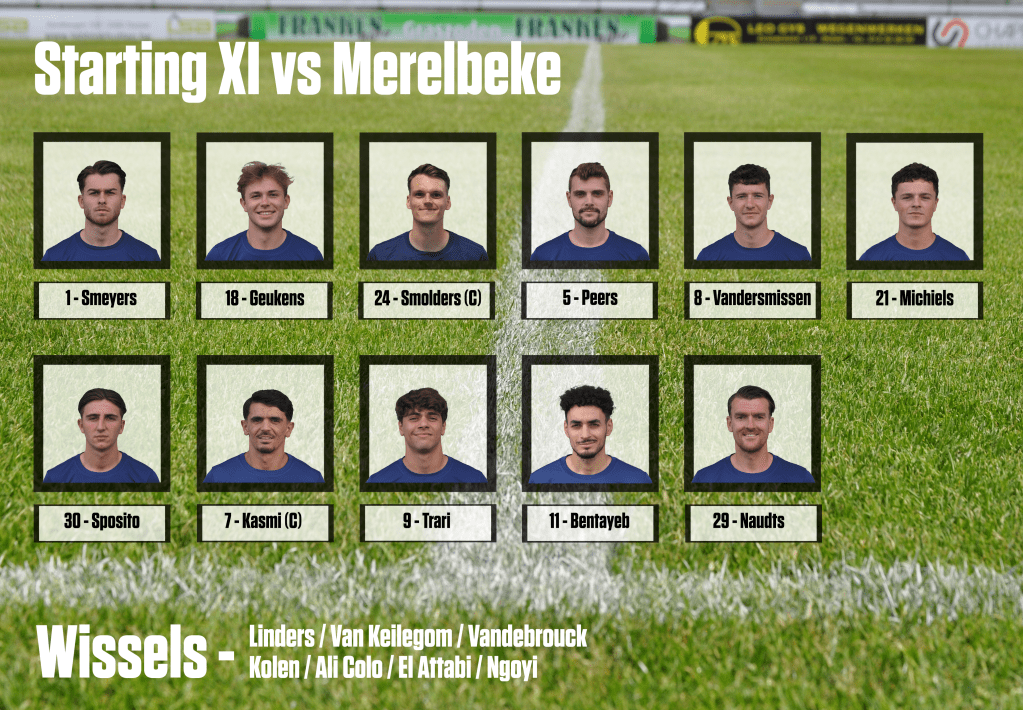 76′ Van Keilegom onderschept halverwege de Merelbeekse helft, hij geeft mee aan El Attabi die vakkundig zijn man uitspeelt en vervolgens net naast schuift.