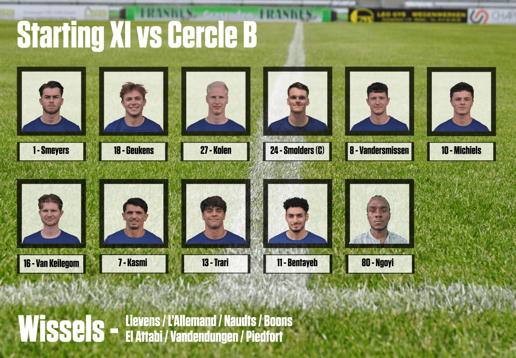 35′ We hebben het niet onder de markt tegen een fit en fel Cercle B. Een ploeg die continu druk zet en weinig ruimte geeft om te voetballen in de verder al hele lastige omstandigheden vanavond.