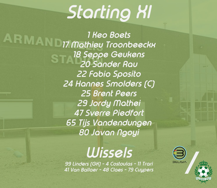 3′ Smolders trapt over de verdediging diep op Troonbeeckx, de aanvaller is iedereen te snel af en lift de bal over de doelman ziet deze nog voor de lijn worden weggewerkt.