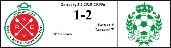 Afgelopen. De 3 punten blijven in Dessel met een misschien wel verdiende, maar ook zeker geflatteerde zege. 90' Baeten nog met een poging van afstand, ruim naast het doel. 89' Mooie en vlotlopende aanval van Dessel. Via Breugelmans, Janssens en Baeten komt de bal voor het doel terecht bij Vansimpsen. Hij lijkt in de rug … Meer lezen over Dessel – Geel